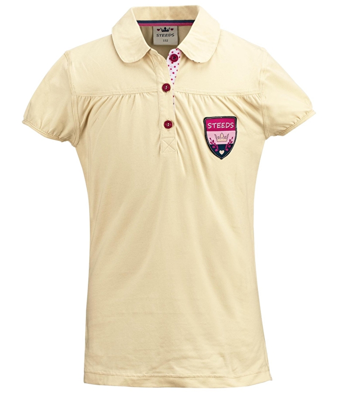 Koszulka polo wykonana z miękkiej bawełnianej dzianiny z krótkim rękawem i marszczonymi szwami na piersi. Kochające detale, a także kołnierzyk i podszewka kołnierza podszyta materiałem w kropki. Z przodu aplikacja z herbem, kontrastowe guziki. Materiał 95% bawełna, 5% elastan.