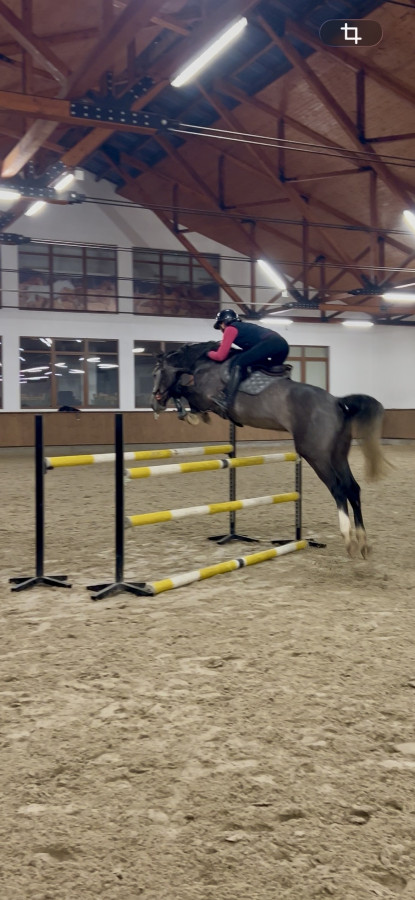 Mądry i odważny koń, zaczyna dopiero pracę pod siodłem po pierwszym wyjeździe na zawody, na którym nic nie zrobiło na nim wrażenia, jeżdżony przez kobietę