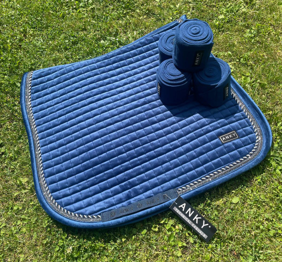 Nowy z metkami komplet: bandaże (kupione za 129 zł) i czaprak Velvet z przepięknego aksamitnego materiału (330 zł). Razem 459 zł - sprzedam całość w cenie czapraka.