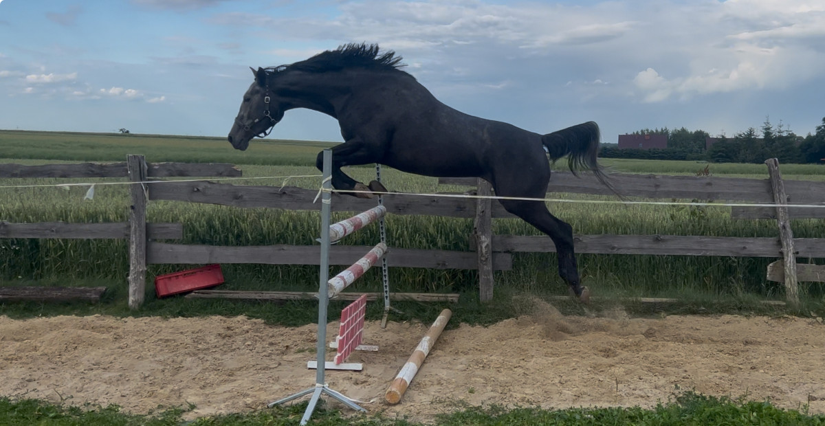 Klacz programowa zbonitowana na 80 pkt, źrebna ogierem Mirt, chodzi w zaprzęgu, przyjęła siodło, grzeczna w obsłudze. Jako 2 latka brała udział w czempionacie, naskakana w korytarzu. Koń prosto od hodowcy.
