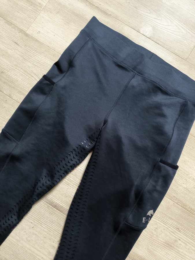 breginsy Bryczesy leginsowe elt. Granatowe. Bez większych dodatków dla fanek prostych rozwiązań. Z dwiema kieszeniami na udzie co docenia Amazonki. Są mega elastyczne i wygodne. Pełny silikon bardzo trzyma. Stan bardzo dobry. Rozm 44 pas 44-53 cm x2 dl całkowita 97 cm wysoki i szeroki stan