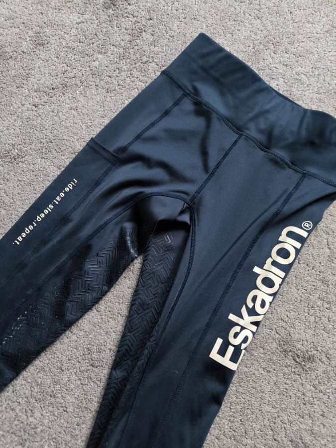 breginsy Bryczesy leginsowe eskadron. Granatowe z białymi wstawkami. Bardzo sportowe. Maja kieszenna udzie super atut. Dodatkowa kieszeń z tyłu na zamek. Wygodne i elastyczne. Wysoki szeroki pas. Mają lej silikonowy 3/4.