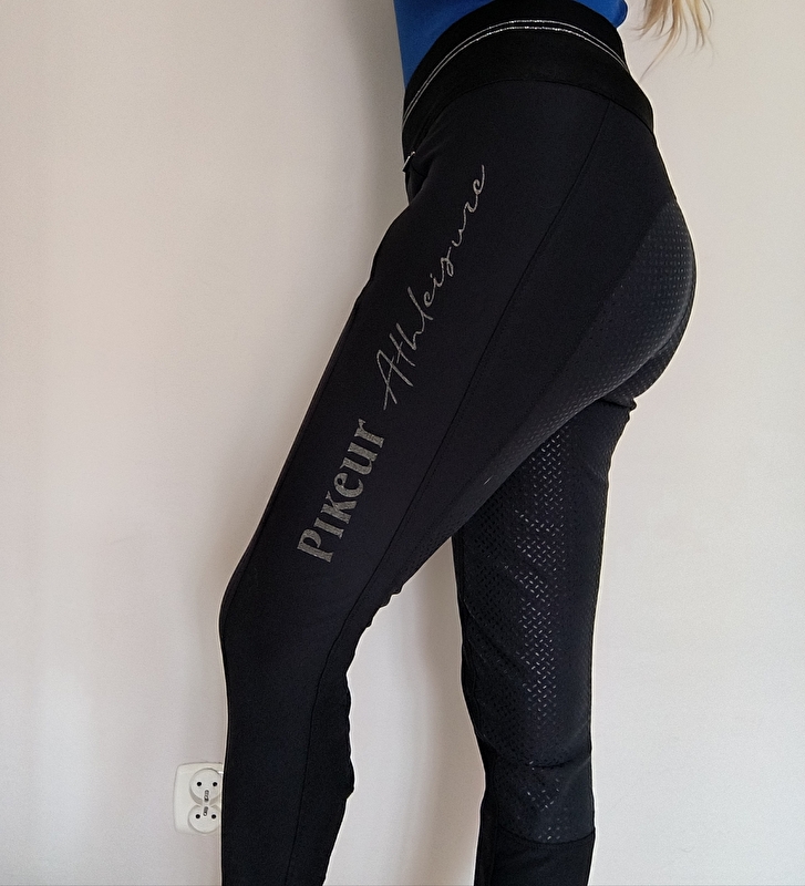 Breginsy Bryczesy leginsowe Pikeur. Czarne z fajnym napisem na udzie. Posiadają głęboka kieszeń na udzie która docenia Amazonki. Wysoki stan z szerokim pasem. Stan bardzo dobry lekkie ślady użytkowania do wyprania. Rozmiar około M brak metki pas 36-41 cm x2 dl całkowita 95 cm wysoki stan
