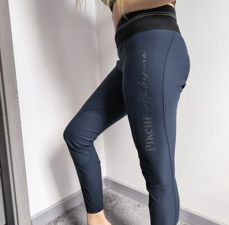 breginsy Bryczesy leginsowe Pikeur. Atleisure. Z kieszenią na udzie. Bardzo wygodny komfortowy materiał.sa elastyczne. Dopasują się do sylwetki. Stan bardzo dobry ale wydaje mi się guma zaczyna się rozciągac. Rozm L pas 40-44 cm x2 dl całkowita 90cm wysoki stan