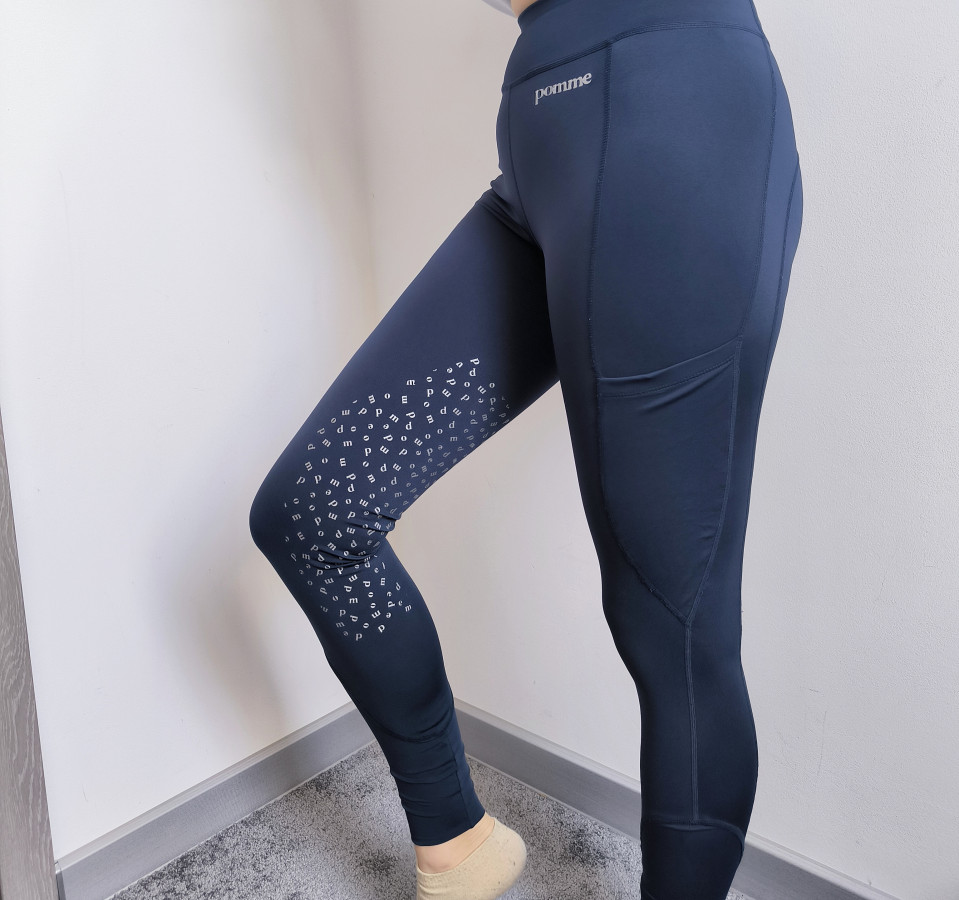 Breginsy Bryczesy leginsowe pomme /we are pomme. Niedostępne w Polsce. Perełka ! Granatowe Maja cieńszy lekki materiał bardziej śliski który mniej się brudzi. Mają dwie kieszenie na udzie idelany atut tych leginsow. Nogawka Flexi. Ładnie dopasowuja się do ciała, są fajnie elastyczne i wygodne. Wysoki stan ma szeroki pas który trzyma talie. Stan bardzo dobry Rozmiar z metki 34 XS pas 33-37cm x2 dl całkowita 93cm