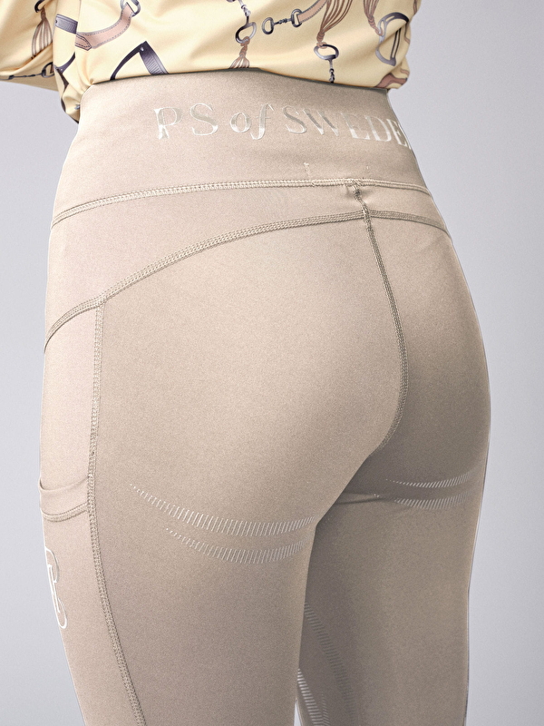 Cieńsze. Beżowe, kolor idealny pod treningi ale również na zawody jeździeckie. Mają wysoki stan z szerokim pasem który ułożony w V optycznie wyszczupla sylwetkę. Maja kieszeń na udzie. Lej silikonowy pod pośladkami i przy kolanach. Świetnie wyglądają. Nowe z metką. Rozmiar z metki XL będą pasować również na XXl