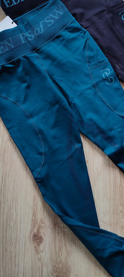 Breginsy (bryczesy leginsowe) troche cieńsze, wzór dresowy Ps of sweden Tanya. . Posiadają kieszonki na udach.Wygodne i elastyczne.Silikon pod pośladkami i przy kolanach, dobrze trzymający. Stanbardzo dobry lekkie ślady użytkowania na leju. Rozm 44/46 pas 45-50 cm x2 elastyczny mocno.