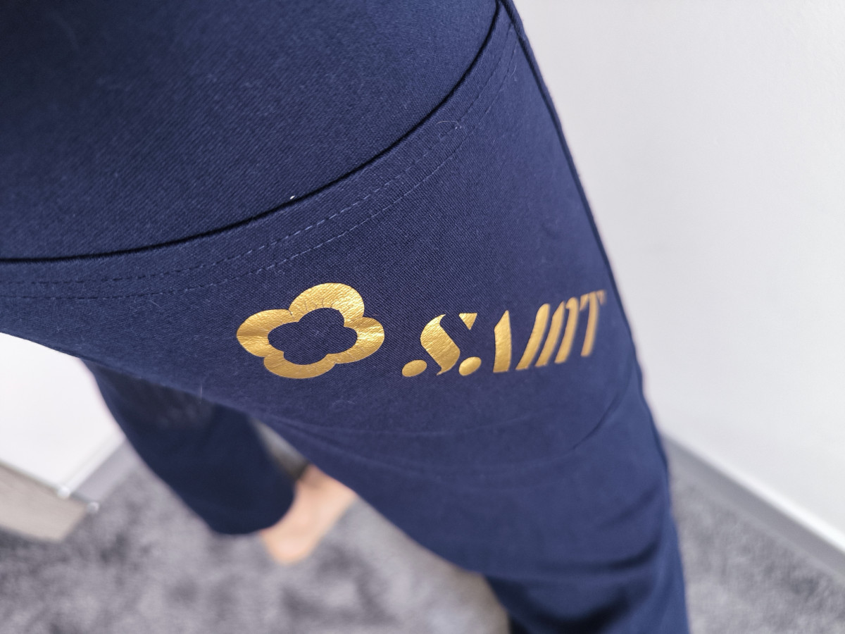 Breginsy Bryczesy leginsowe Saint. Granatowe. Z solidnej bawełny raczej całoroczne. Mają dwie kieszenie na udzie. Szeroki pas. Stan bardzo dobry lej bez zarzutu ale przy pasie na szwach w kilku miejscu odeszły nitki. Rozmiar xl pas 42-46 cm x2 dl całkowita 92 cm