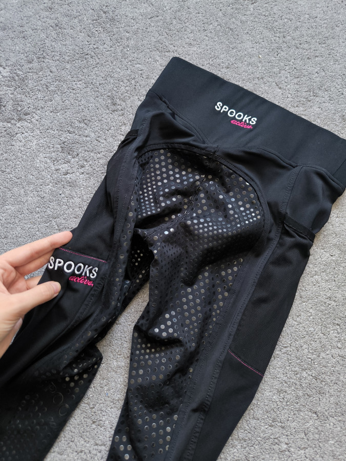 Breginsy Bryczesy leginsowe Spooks. Czarne Nowszy model active Mega wykonane, są jak druga skóra po założeniu. Pięknie układają się na sylwetce. Są mega elastyczne i ultra wygodne. Zdecydowanie warte polecenia. Mają kieszenie na udzie ! Mega atut. Pas szeroki ładnie podkreśla i trzyma talie. Świetnie się prezentują-poprostu. I są funkcjonalne. Mają siateczkę też na części nogi i siatkowe kieszenie. super stan ogólny . Rozm XS wysoki stan