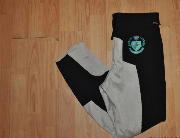 Sprzedam nowe (z metkami), czarne bryczesy z pełnym, aksamitnym, jasnym, lejem. Posiadają jasne obszycia, ściągacze flexi u dołu nogawek, dwie kieszenie przednie z jasną lamówką, dwie tylne (na jednej turkusowe logo).