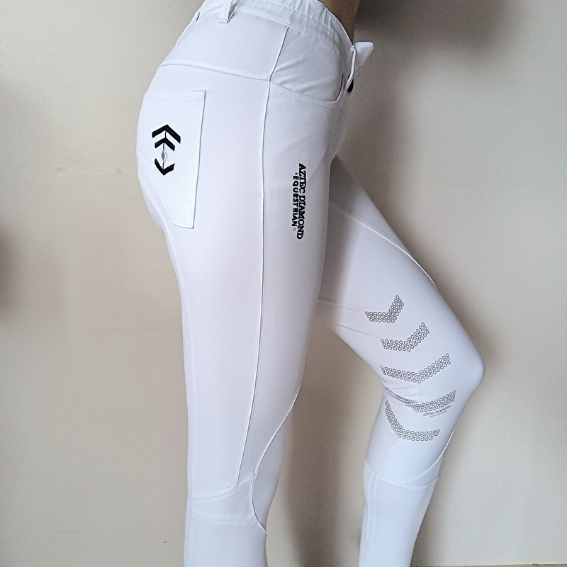 Bryczesy Aztec diamond. Kultowa marka ciężko dostępna w Polsce. Białe konkursowe. Wygodny materiał cieńszy. Nogawka Flexi. Pas na gumce. Stan bardzo dobry. Naprawdę mini zabrudzone. Rozmiar XS pas 34 cmx2 biodra 40 cm x2 dl całkowita 82 cm dla niższych osób