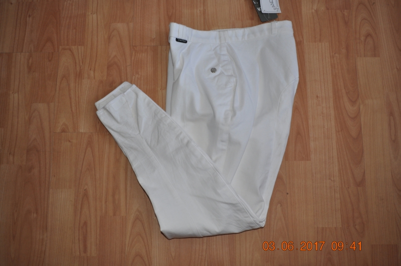 Sprzedam białe, turniejowe bryczesy firmy Horka Atlanta. Dostępne w rozmiarze 44. Bryczesy damskie, z pełnym lejem, dwie przednie kieszenie na zatrzaski. Rzepy u dołu nogawek. Nowe, z metkami (posiadają wadę w postaci przetarcia w górnej części leja, z tyłu).