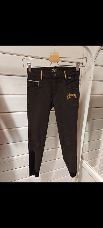 Czarne bryczesy, krótki lej silikonowy, nogawki flex, ogólny stan bdb, pojedyncze zaciągnięcia materiału na dole nogawki (widoczne na zdjęciach) ,lej w głowy koni