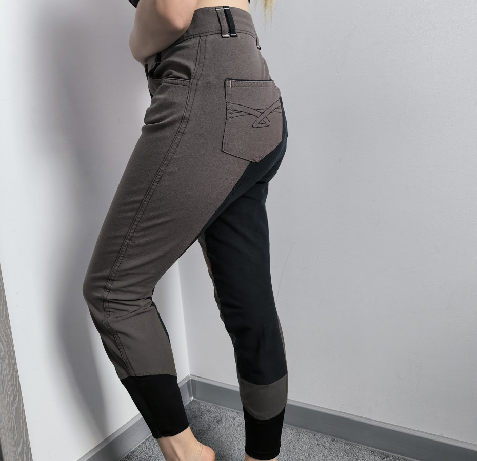 bryczesy busse. Szaro beżowe. Z nogawka Flexi. Pełny lej zamsz. Dla fanek prostoty i bez dodatków. Wygodne budżetowe. Stan bardzo dobry lekkie naderwanie szwu na kieszeni przy leju z obu Stron. Rozmiar 40 L pas 40 cm x2 biodra 47 cm x2 dl całkowita 90 cm wysoki stan