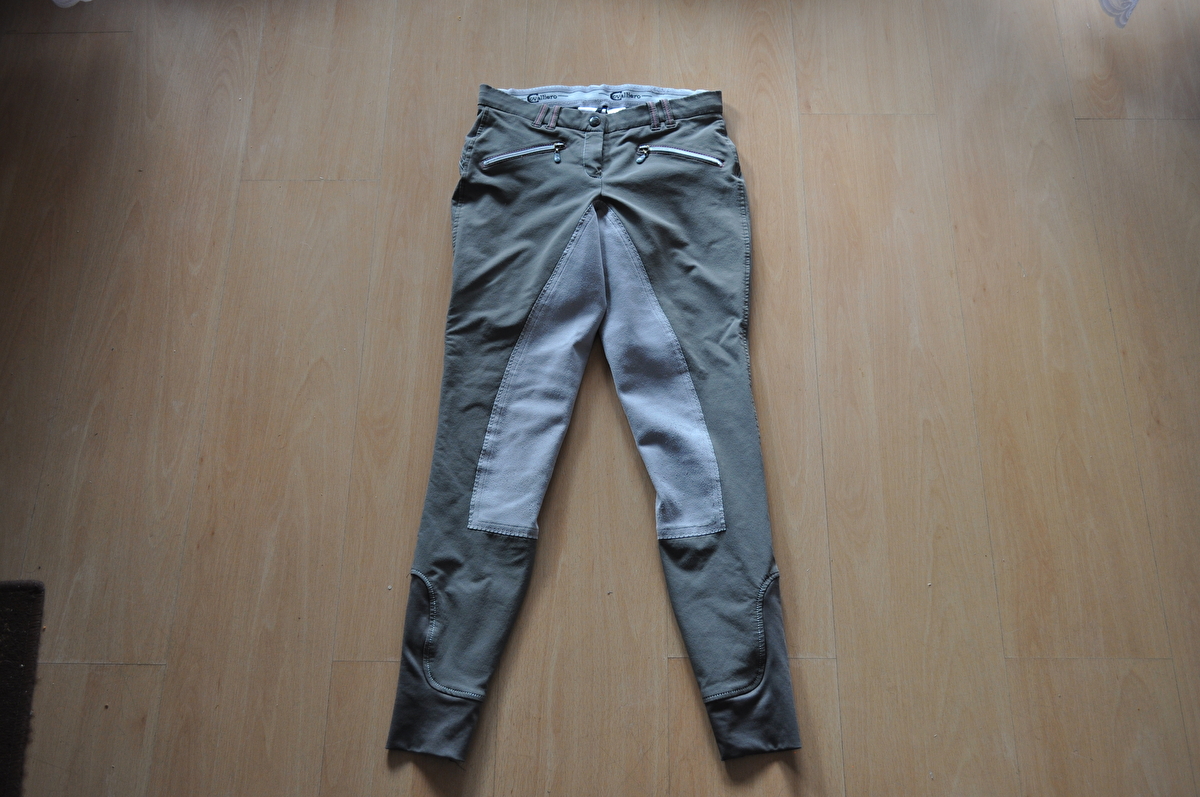 bryczesy firmy Cavalliero model Detroit NG w rozmiarze 36 , długość 90 cm , pas 35 cm x2 , bryczesy w kolorze khaki z pełnym, jasnoszarym lejem , Uszyte z materiału (79% Tactel, 16% Coolmax), który latem zapewnia idealne odprowadzanie wilgoci, a zimą utrzymuje ciepło, ozdobne przeszycia , z tyłu różowe dżeciki , używane , bez dziur , plam , minimalne przybrudzenia na dolnej częsci leja, cena 60 zł + przesyłka 15 zł lub wysyłka olx