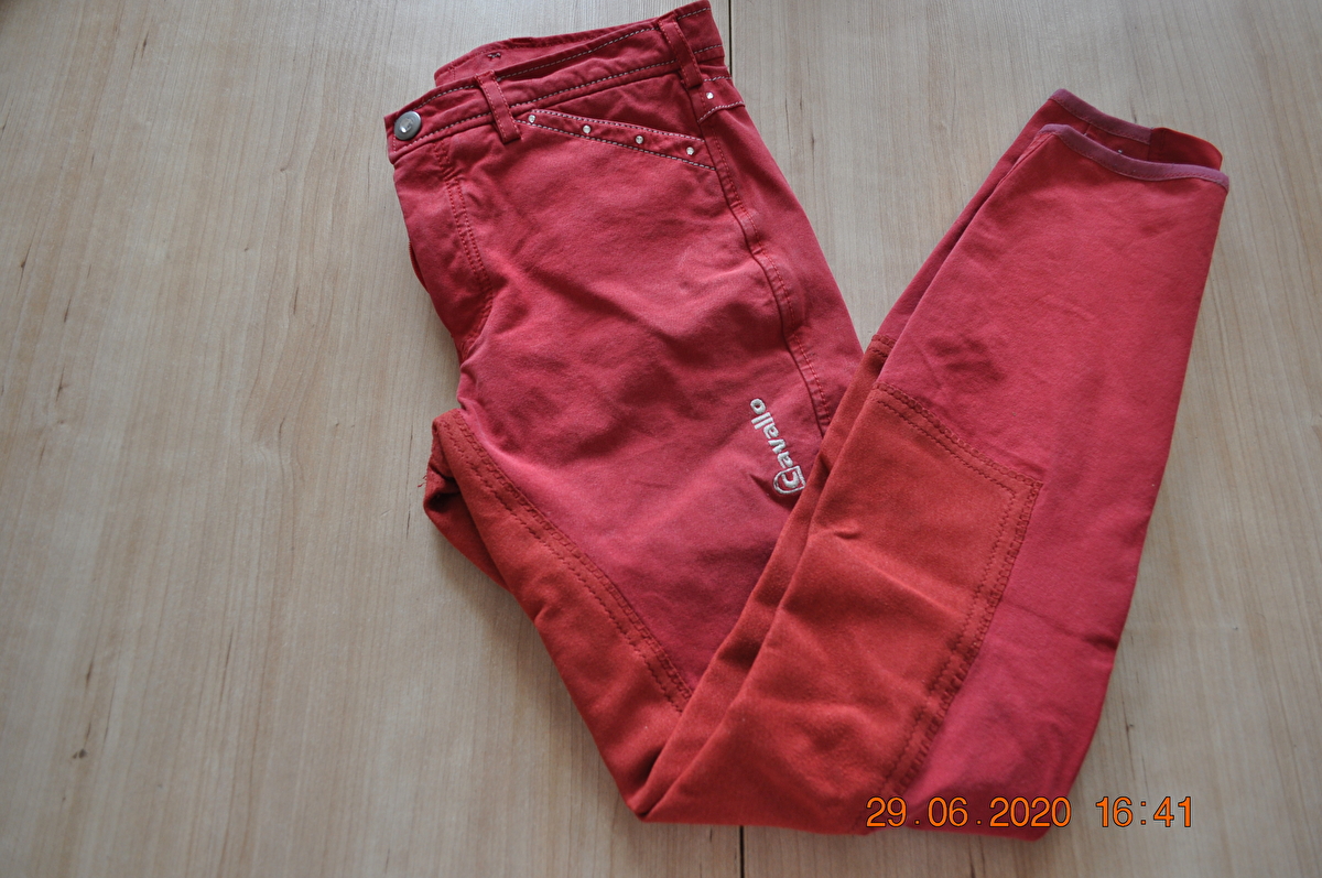 Sprzedam używane bryczesy Cavallo w rozmiarze 164 cm. pełny lej. Wysadzane cyrkoniami w ololicy pasa i kieszeni.