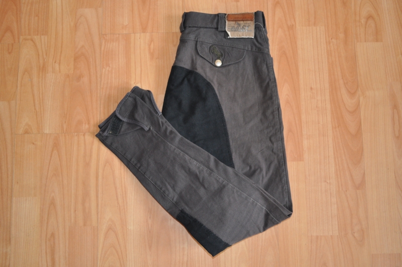 Posiadam na sprzedaż bryczesy firmy ea.St w rozmiarze (z metki) 72 cm. Bryczesy damskie, w kolorze grafitowym, z ciemnym, pełnym, wygodnym lejem, zapięciami na rzepy u dołu nogawek, dwoma kieszeniami z przodu oraz dwoma tylnymi zapinanymi na napy. Model standardowy, bardzo wygodne. Stan bardzo dobry, jak na załączonych zdjęciach.