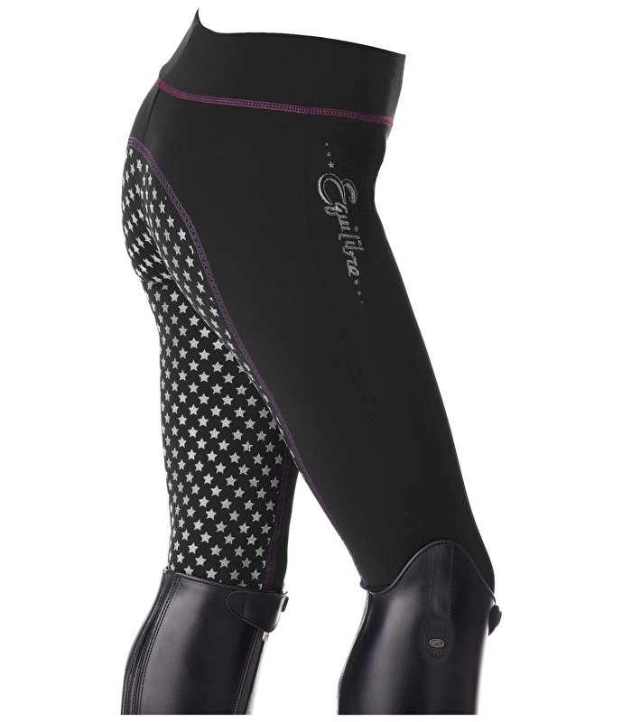 Super wygodne legginsy dziecięce wykonane z miękkiego, technicznego materiału 4-way stretch i błyszczącego silikonu w gwiazdki z pełnym lejem. Bardzo wygodne Innowacyjne zapięcie na nogawce bez rzepów. 80% nylon, 20% elastan