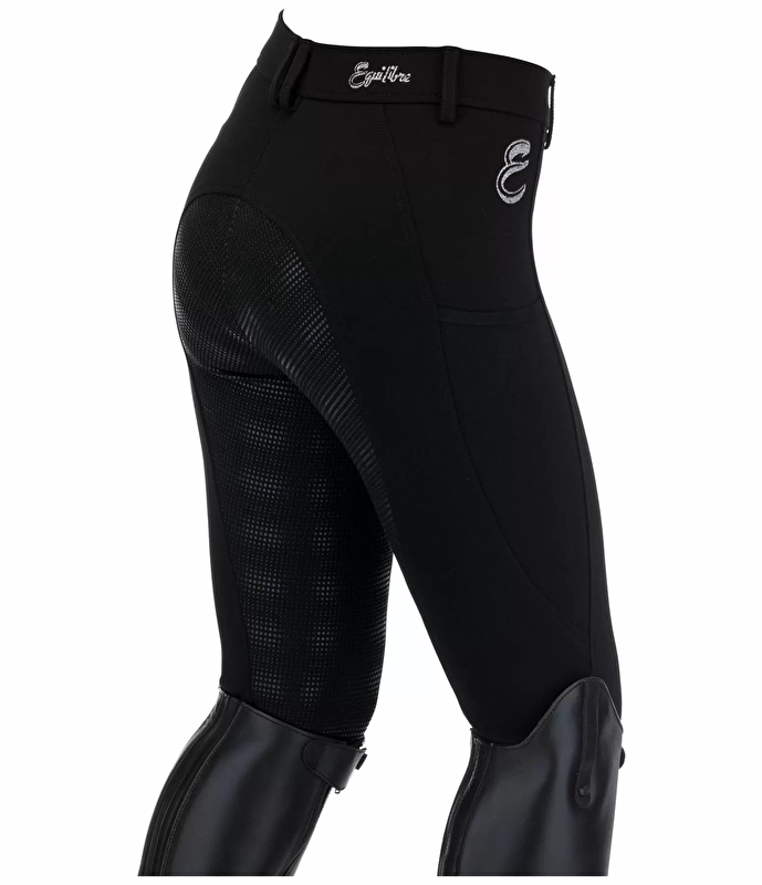 Niezwykle wygodne, oddychające bryczesy z pełnym lejem dla dzieci wykonane z rozciągliwego, super miękkiego materiału 4-way stretch z pełnym lejem wykonanym z silikonu. Kieszeń na telefon komórkowy z boku, elastyczne zakończenia nogawek bez materiału na rzep.