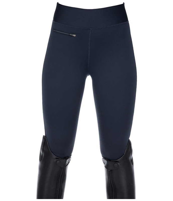 Legginsy termiczne dla dzieci Equilibre z pełnym lejem wykonanym z silikonu zapewniają antypoślizgowe trzymanie w siodle. Wyjątkowo miękki i termoizolacyjny materiał legginsów jeździeckich Grip zapewnia wysoki poziom komfortu i maksymalną swobodę ruchów w siodle dzięki czterokierunkowej rozciągliwości. Co więcej, termiczne legginsy jeździeckie zachwycają właściwościami oddychającymi i szybkoschnącymi, co oznacza, że jeździec zawsze czuje się komfortowo nawet podczas wysiłku. Chropowata i ocieplająca strona wewnętrzna legginsów jeździeckich dla dzieci niezawodnie zapewnia ciepłe nogi. Dzięki praktycznym detalom, takim jak 1 zapinana na zamek przednia kieszeń i 1 zapinana na zamek kieszeń tylna, telefony komórkowe, klucze itp. Można bezpiecznie schować podczas jazdy i pracy w stajni.