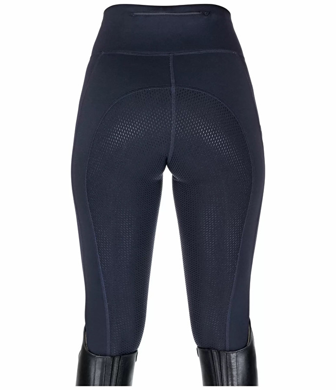 Niezwykle wygodne legginsy jeździeckie wykonane z rozciągliwego, super miękkiego materiału 4-way stretch z pełnym lejem wykonanym z silikonu. Bardzo szeroki pas, 1 tylna kieszeń na suwak, kieszeń na telefon komórkowy na nogawce, bez szwów kolanowych, elastyczne zakończenia nogawek bez materiału na rzep. 68% wiskoza, 27% nylon, 5% elastan.