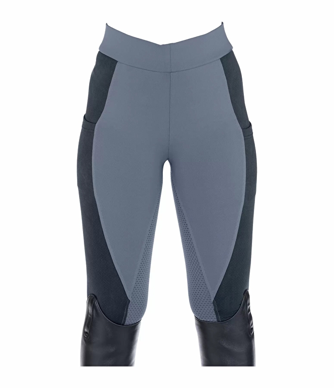 Sportowe, szybkoschnące legginsy jeździeckie dla dzieci w kontrastowym kolorze, wykonane z wysokiej jakości, rozciągliwego materiału 4-way stretch z oddychającymi wstawkami z siateczki na nogawkach. Pełne siedzisko wykonane z silikonu, pas z szeroką gumką oraz kieszeń na telefon komórkowy na nogawce. 86% nylon, 14% spandex. Wstawki z siateczki 95% poliester, 5% elastan.