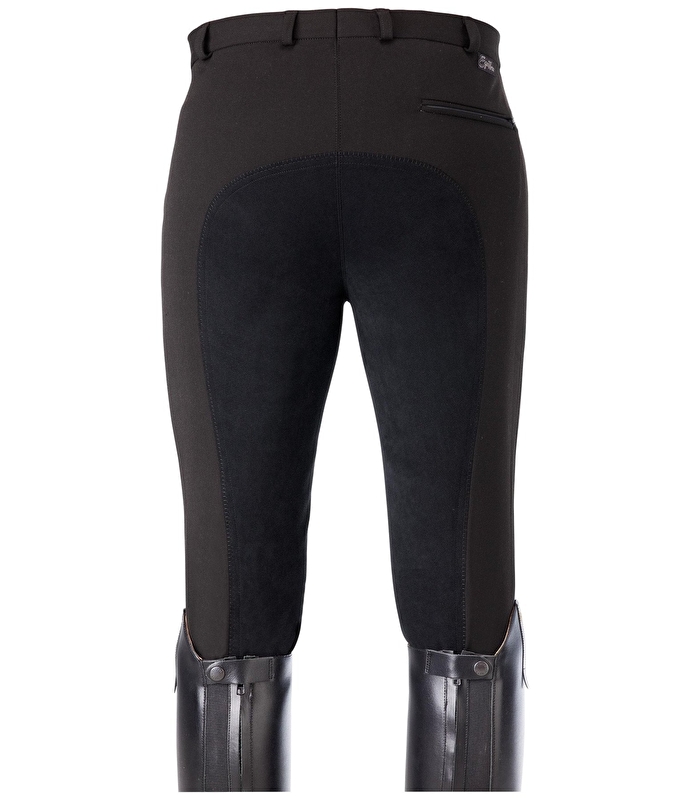 Bryczesy męskie o klasycznym kroju z pełnym lejem. Elastyczny pas ze szlufkami, 2 przednie kieszenie na suwak, 1 tylna kieszeń na suwak, nogawki na rzepy. 62% poliester, 33% wiskoza, 5% elastan