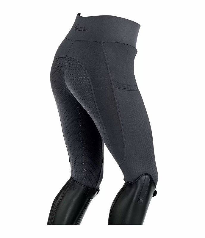 Sportowe, hybrydowe legginsy do jazdy konnej wykonane z rozciągliwego, bardzo miękkiego, elastycznego materiału z szerokimi wstawkami z siateczki na nogawkach. Pełne siedzisko wykonane z silikonu. Oddychający, szybkoschnący, rozciągliwy w 4 kierunkach. Wstawki z siateczki zapewniają optymalną wentylację. Bardzo szeroki pas, 2 kieszenie na telefon komórkowy na nogawkach, brak szwów kolanowych, elastyczne zakończenia nogawek bez rzepów. Materiał: 86% nylon, 14% elastan, wstawki z siatki 95% poliester, 5% elastan.