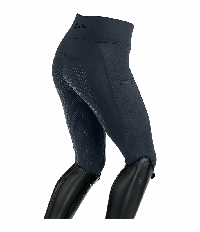 Sportowe, hybrydowe legginsy do jazdy konnej wykonane z rozciągliwego, bardzo miękkiego, elastycznego materiału z szerokimi wstawkami z siateczki na nogawkach. Pełne siedzisko wykonane z silikonu. Oddychający, szybkoschnący, rozciągliwy w 4 kierunkach. Wstawki z siateczki zapewniają optymalną wentylację. Bardzo szeroki pas, 2 kieszenie na telefon komórkowy na nogawkach, brak szwów kolanowych, elastyczne zakończenia nogawek bez rzepów. Materiał: 86% nylon, 14% elastan, wstawki z siatki 95% poliester, 5% elastan.