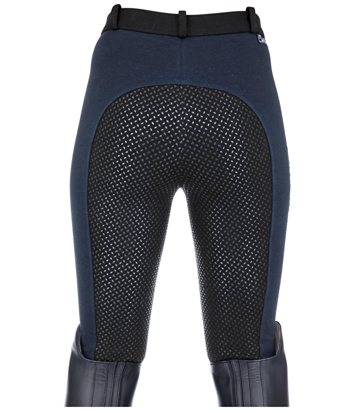 Bryczesy dla dzieci z innowacyjnymi silikonowymi lamówkami, inspirują młodych jeźdźców nie tylko dzięki przyjaznej dla skóry mieszance bawełny, ale także dzięki modnemu dwukolorowemu wyglądowi, z którym można zestawiać fajne stroje. Wizualną atrakcją bryczesów dziecięcych jest sportowy haft na prawym udzie. Szczególną zaletą dotyczącą spodni jest oryginalny pełny lej wykonany z silikonu, który zapewnia świetną przyczepność w siodle i dlatego jest również odpowiedni dla początkujących, którzy nadal mają niebezpieczne siedzenie. Bryczesy dziecięce z pełnym lejem zapewniają odpowiedni komfort dzięki elastycznym końcówkom nogawek i elastycznemu pasowi, który jest wyposażony w praktyczne szlufki na pasek. Zintegrowana z przodu kieszeń na suwak zapewnia również niewielką przestrzeń do przechowywania (smakołyki, Klucze, pieniądze itp.) Są zadbane. 95% bawełna, 5% spandex.