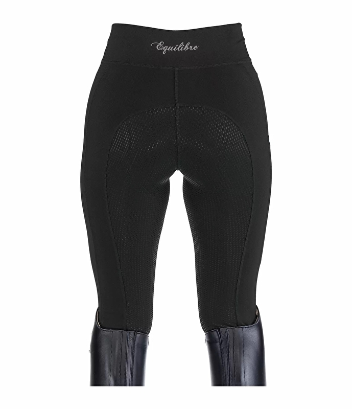 Świetne legginsy jeździeckie wykonane z rozciągliwego, super miękkiego, rozciągliwego materiału z pełnym silikonowym siedziskiem. Oddychający, szybkoschnący, rozciągliwy w 4 kierunkach. Bardzo szeroki pas, kieszeń na telefon komórkowy na nogawce, brak szwów na kolanach, elastyczne mankiety nogawek. Materiał: 89% poliester, 11% elastan.