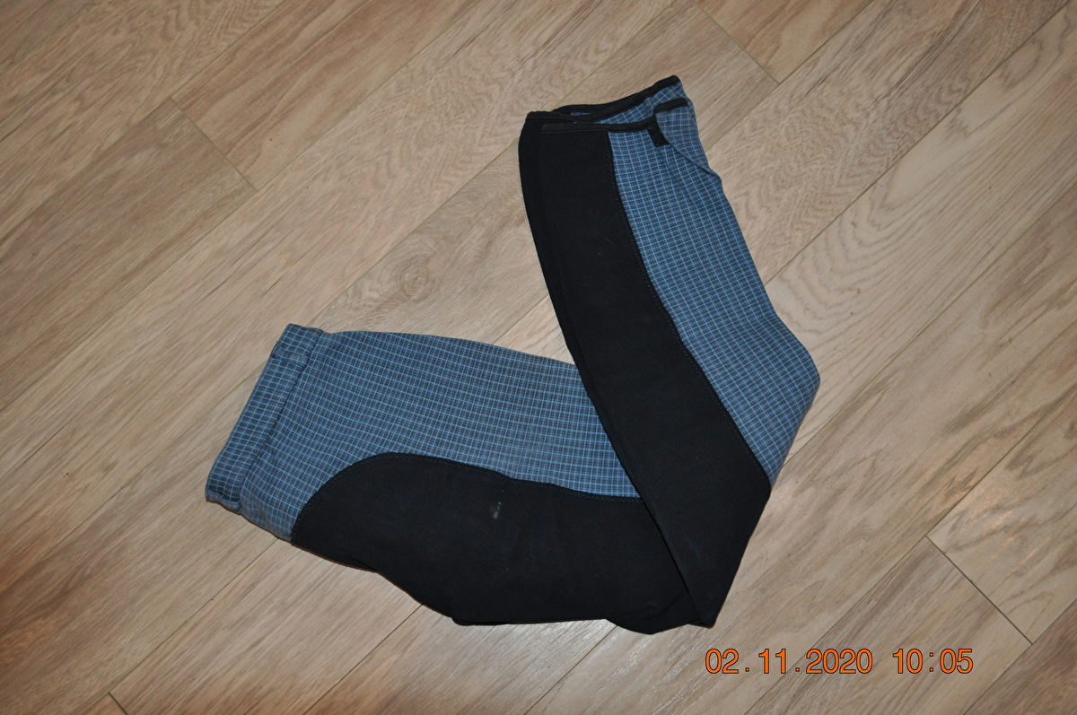 Sprzedam młodzieżowe bryczesy marki Equilibre. Bryczesy w bardzo dobrym stanie, posiadają małe zabrudzenia, do odświeżenia. Pełny lej ,jedna kieszonka z przodu na zamek, nogawki zakończone rzepami. Lej lekko zmechacony w niektórych miejscach.