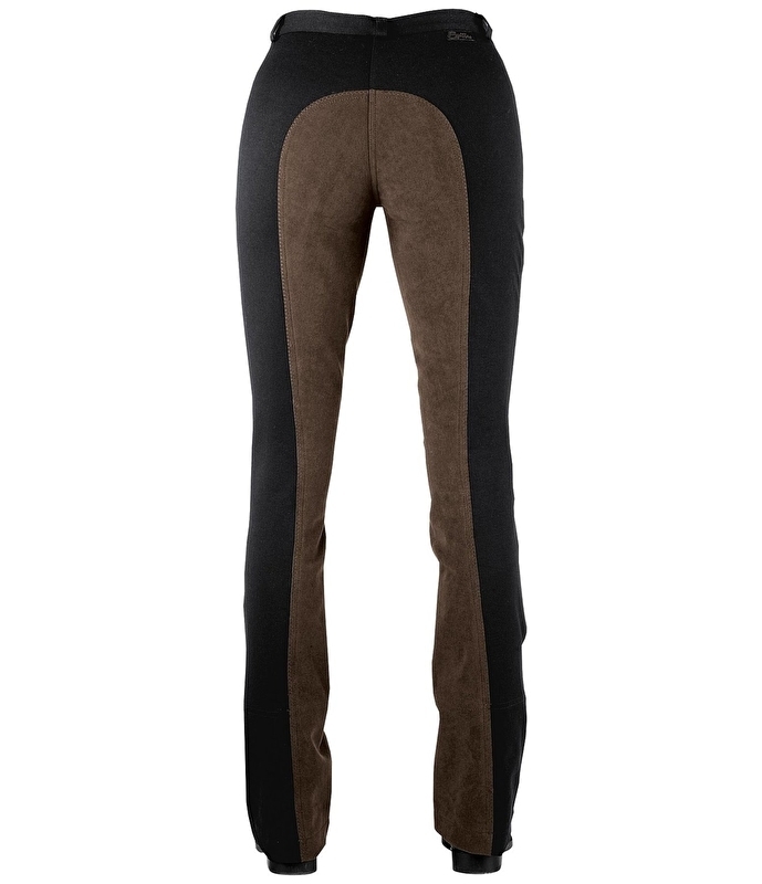 Super elastyczne, wygodne bryczesy Jodhpur marki Equilibre z ciągłym, elastycznym wykończeniem ze skóry syntetycznej. Lamówka jest pozbawiona zmarszczek, a bolesne punkty nacisku, szczypania i tarcia są skutecznie eliminowane dzięki anatomicznie poprawnemu dopasowaniu bryczesów Jodhpur. Ponadto lamówki bryczesów zapewniają, że jeździec pewniej siedzi na gładkiej skórze siodła. Rozciągliwy materiał jest wytrzymały, łatwy w pielęgnacji i szybko schnie. Dzięki właściwościom oddychającego materiału, bryczesy Jodhpur zawsze zapewniają przyjemny klimat ciała - nawet podczas intensywnej jazdy. Elastyczny i regulowany podnóżek zapobiega zsuwaniu się lekko rozszerzanych nogawek spodni. 2 przednie kieszenie na suwak, solidne szlufki na pasek. Materiał 62% poliester, 33% wiskoza, 5% elastan.