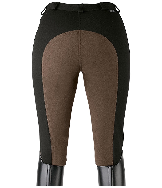 Sprzedam czarne bryczesy firmy Equilibre model Super-Stretch Two Tone w rozmiarze 88. Damskie bryczesy, z pełnym brązowym lejem, zakończone nogawką z zapięciem na rzep. Rozciągliwe.