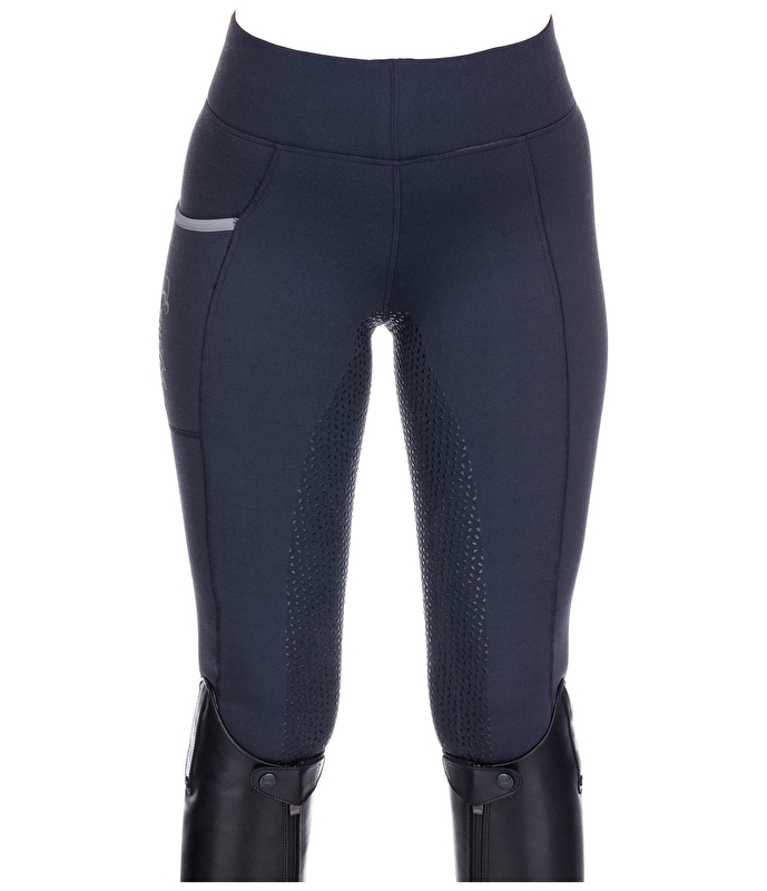 Super przytulne i ciepłe zimowe jeździeckie legginsy na szczególnie mroźne dni! Niezwykle dobre i wygodne dopasowanie dzięki miękkiemu, elastycznemu materiałowi rozciągliwemu w 4 kierunkach z puszystym wnętrzem. Pełne silikonowe siedzisko, boczna kieszeń na telefon komórkowy i bardzo szeroki pas z kieszenią na suwak. 60% poliester, 30% poliamid, 10% elastan.