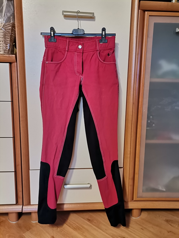 Damskie bryczesy z pełnym lejem ¾ z elastycznego, bardzo trwałego, syntetycznego zamszu COMFITECH. Cztery funkcjonalne kieszenie. Na tylnej kieszonce ozdobny haft.