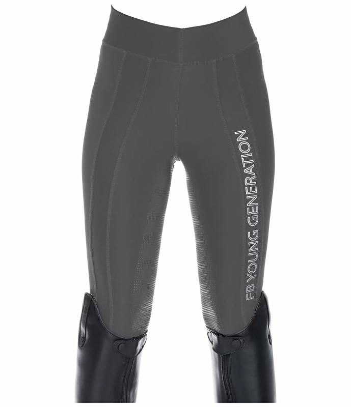 Sportowe, oddychające i super wygodne dziecięce legginsy jeździeckie wykonane z wysokiej jakości elastycznego materiału 4-way stretch, z pełnym silikonowym siedziskiem. Z przodu duży nadruk Felixa Bühlera. Elastyczny pas, 1 kieszonka na suwak z tyłu. Materiał: 90% nylon, 10% elastan.