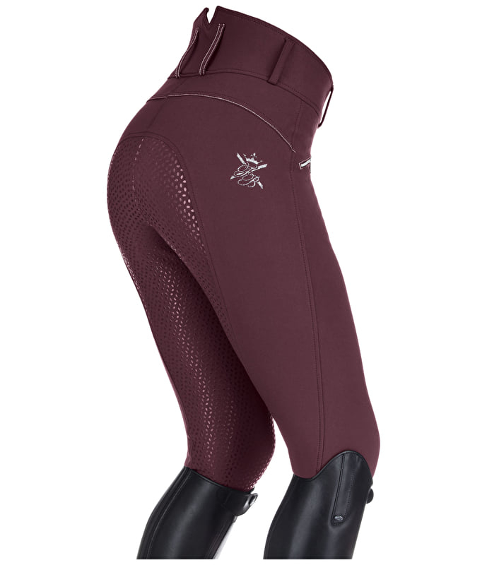 Eleganckie bryczesy wysokie z innowacyjnym pełnym lejem wykonanym z silikonu. Zapewnia idealne trzymanie w siodle. Elastyczne zakończenie nogawek bez rzepów. Żadnych irytujących szwów na kolanach. Materiał jest wodoodporny, oddychający, trwale elastyczny, wytrzymały i łatwy w pielęgnacji. Świetne nadruki Felix Bühler, 2 kieszenie na suwak z przodu, kontrastowe szwy, elastyczny pas. 93% nylon, 7% elastan.
