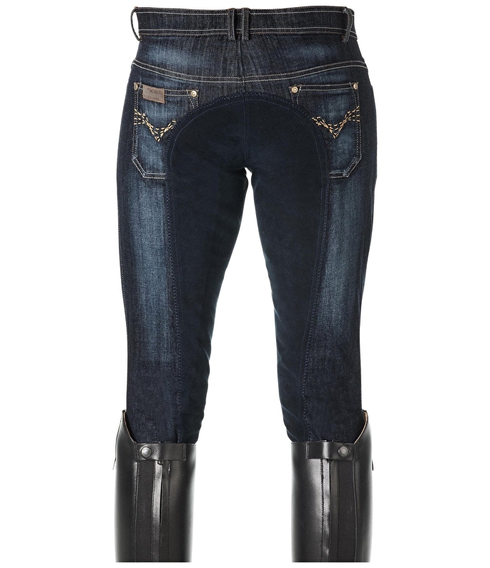 Modne bryczesy męskie z pełnym lejem wykonane z denimu z lekkim spraniem. Naszywka z imitacji skóry Felixa Bühlera, elastyczny pas ze szlufkami, zapięcie na guzik, 2 przednie kieszenie, 2 naszywane kieszenie z haftem z tyłu. 95% bawełna, 5% spandex.