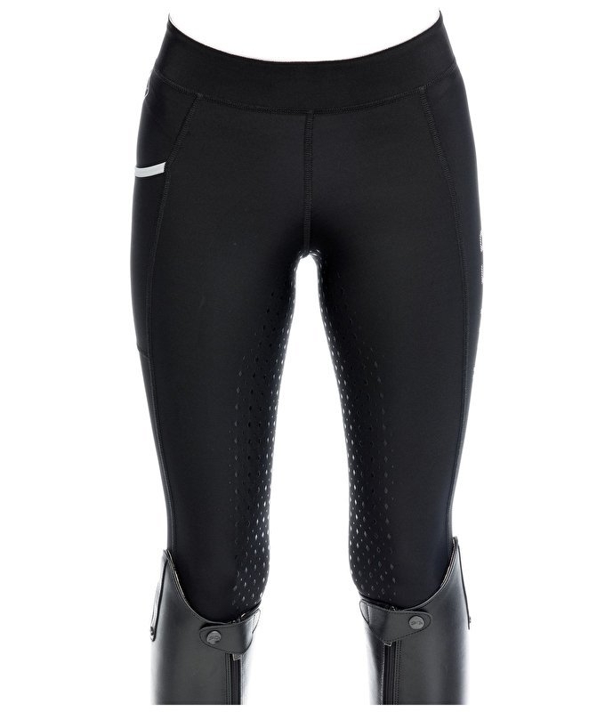 Sportowe, bardzo wygodne legginsy jeździeckie wykonane z wysokiej jakości, elastycznego materiału 4-way stretch, w pełni zaopatrzone w silikon. Boczny, bardzo duży nadruk Felix Bühler. Elastyczny pas, kieszeń na telefon komórkowy na nogawce, elastyczny koniec nogawki bez materiału na rzepy. Materiał: 90% nylon, 10% elastan.