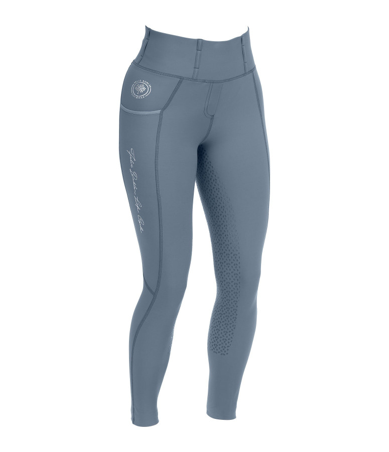 Niezwykle wygodne legginsy jeździeckie wykonane w dużej mierze z materiału pochodzącego z recyklingu, wysokiej jakości, rozciągliwego w 4 kierunkach materiału, z pełnym silikonowym lejem, od wewnątrz podszyte miękkim materiałem. Bardzo szeroki pas ze szlufkami, 1 kieszeń na suwak z tyłu, boczna kieszeń na telefon komórkowy, brak irytujących szwów na kolanach, elastyczne zakończenia nogawek, nadruki Felix Bühler Life Cycle. Materiał: 78% poliamid, 22% elastan.