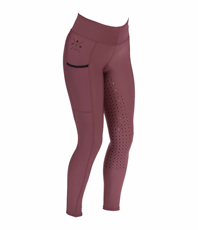 Niezwykle wygodne legginsy jeździeckie wykonane z wysokiej jakości elastycznego 4-way stretch materiału z pełnym silikonowym lejem. Bardzo szeroki pas, kieszeń na suwak z tyłu, boczna kieszeń na telefon komórkowy, brak irytujących szwów na kolanach, elastyczne końce nogawek, różne silikonowe nadruki Felix Bühler. 90% nylon, 10% elastan.