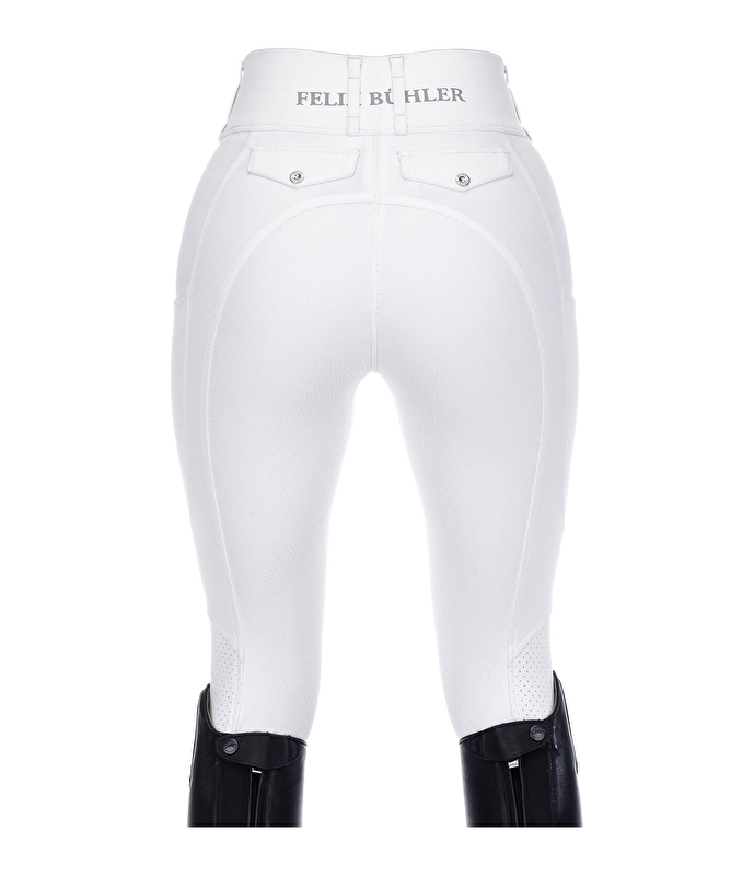 Niezbędne na ciepłe dni. Bardzo wygodne, przewiewne legginsy jeździeckie z technicznymi, wycinanymi laserowo wstawkami na nogawce. Wysokiej jakości, super rozciągliwy, 4-kierunkowo rozciągliwy materiał zapewnia doskonały efekt modelujący.