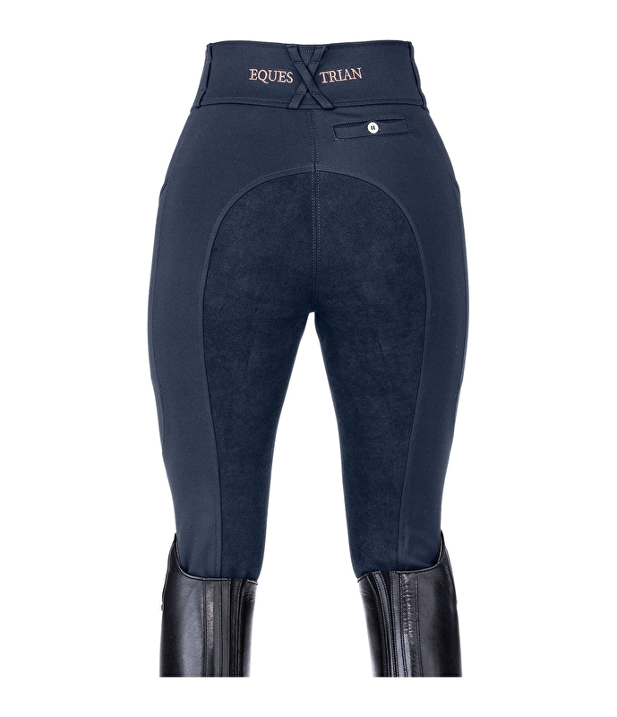 Stylowe legginsy do jazdy konnej wykonane z rozciągliwego, bardzo miękkiego, materiału z pełnym lejem ze skóry syntetycznej. Haft Felix Bühler na nogawce i pasie. Bardzo szeroki pas ze szlufkami , 2 kieszenie na telefon komórkowy na nogawkach, 1 mała kieszeń z tyłu, elastyczne zakończenia nogawek. 68% wiskoza, 27% nylon, 5% elastan.