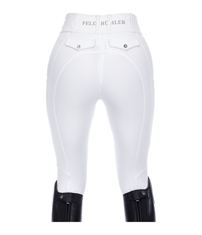 Bardzo wygodne, przewiewne bryczesy z technicznymi wstawkami wycinanymi laserowo na nogawce. Wysokiej jakości, super rozciągliwy, 4-kierunkowo rozciągliwy materiał zapewnia doskonały efekt modelujący. Siedzisko w pełni silikonowe, bardzo oddychające i szybkoschnące. Wygodny pas ze szlufkami i 2 zatrzaskami. 2 boczne kieszenie na telefon komórkowy z laserowo wyciętymi lamówkami, 2 imitacje kieszeni zapinane na guziki z tyłu, bez szwów na kolanach, sportowe nadruki Felixa Bühlera.