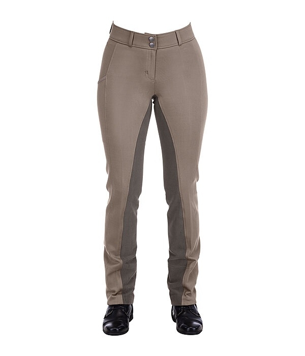 Wygodne bryczesy z pełnym lejem wykonane z imitacji skóry. Elastyczny, szeroki pas zapinany na 2 guziki, 1 kieszeń na suwak z tyłu, kieszonka na telefon komórkowy na nogawce, haft Felix Bühler na plecach, krój bootcut, gumowy pasek z regulacją długości. Materiał jest bardzo elastyczny i super miękki. Materiał: 68% wiskoza, 27% nylon, 5% elastan.