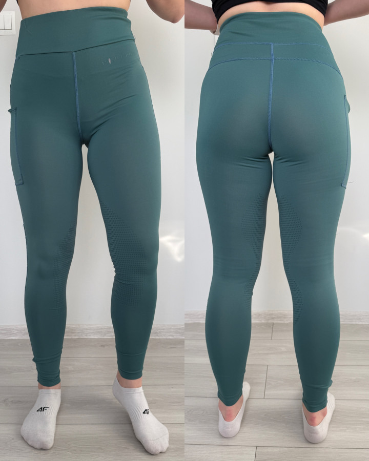 Sprzedam bryczesy legginsy jeździeckie firmy Horse Rider w kolorze morskim z kolanowym silikonowym lejem. Rozmiar 36. Kieszonka na udzie. Stan -bdb. Malutkie zszycie na kieszonce. Silikon bez ubytków. Cena 50zł