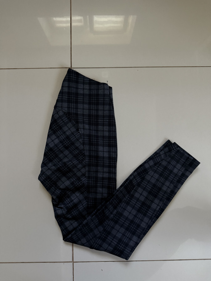 Bryczesy legginsy jeździeckie Horze 34 krata szaro czarne