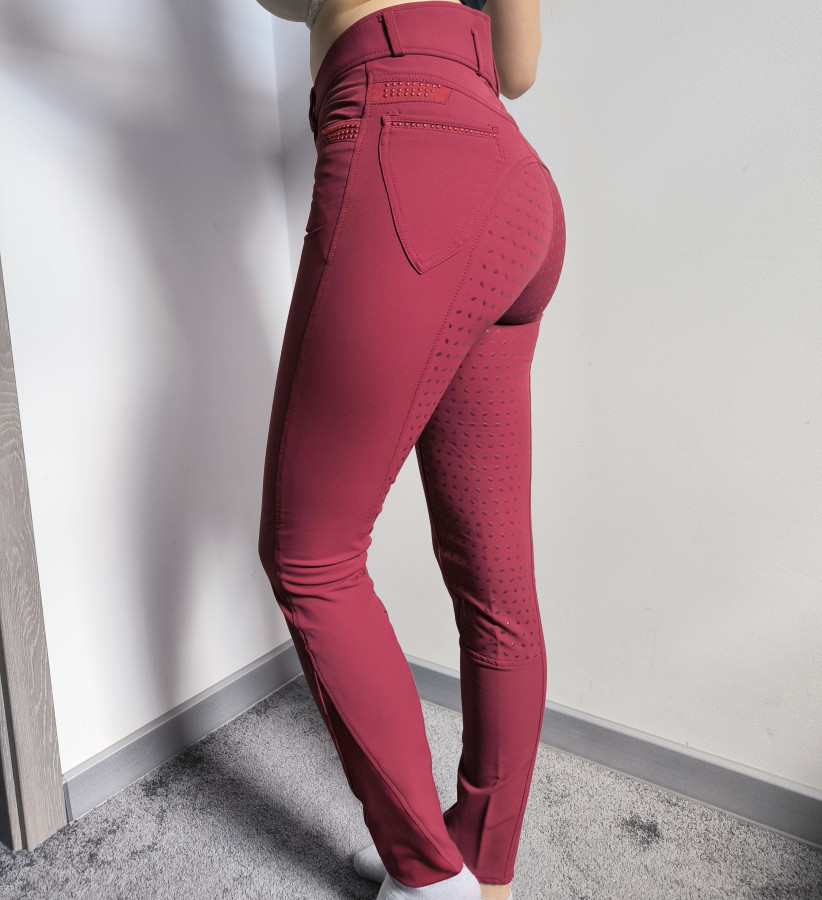 Bryczesy montar. Kolor coś pod bordo z domieszką czerwonego. Materiał Softshell nie łapie brudu. Mają piękne zdobienia przy pasie. Eleganckie i bardzo wygodne. Super układają się na sylwetce. Pełny lej silikonowy. Stan idealny.