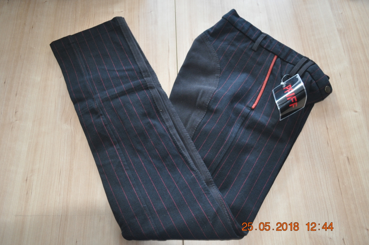Posiadam na sprzedaż bryczesy stajenne typu Jodhpur w rozmiarze 72. Bryczesy z pełnym lejem, czarne, w czerwone, podłużne pasy. Nogawki rozszerzane u dołu. Bryczesy nowe, z metkami.